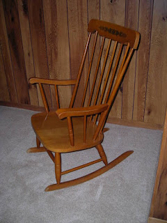 I acquired a fine rocking chair at a garage sale this weekend. It got my ThinkinSchemer™ into overdrive and I started to troll Kijiji for some inexpensive chairs to complete the collection. I pick this one up tomorrow evening for a paltry $10.